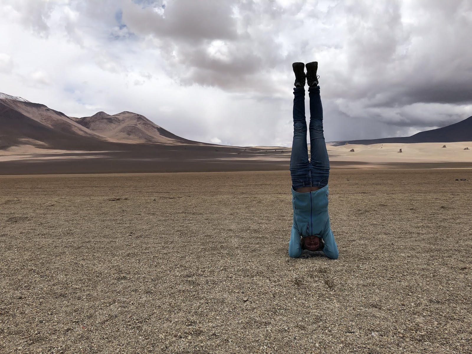 In de verte, op het lichte zand achter mijn lichaam, zag je een paar grote stenen liggen. Angel vroeg ons hoe lang we dachten nodig te hebben naar die stenen te lopen. We dachten allemaal tussen de 20 en 30 minuten. Hij zei dat hij er in 4 uur heen kon lopen en wij zouden er zeker 8 uur over doen. Ze lagen 20 km verderop. We konden het nauwelijks geloven maar niemand had de behoefte het uit te gaan proberen.